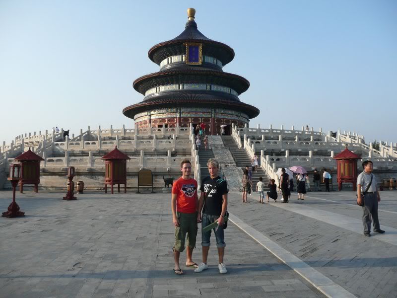 In der beruehmtesten Einkaufsstrasse Chinas - der Wangfujing - trafen wir uns mit Daniel, den ich damals in Dalian kennen lernte, mit dem wir ein bisschen einkauften. Als dieser etwas anderes vor hatte, machten wir uns auf in Richtung Himmelstempel. Auf dem Weg zur Metro trafen wir einen netten Chinesen, der uns in Englisch ansprach. Nach einem netten Palaber - er sprach sehr gutes English - stellte sich heraus, dass er seit 10Jahren Kalligrafie studiere und in ner Woche fuer 10 Tage nach Muenchen fahre, um dort einen Intensivkurs anzubieten. Er lud uns in sein Buero ein, um dort unsere Namen in Kalligrafie zu schreiben. Um so eine Chance nicht ungenutzt zu lassen, gingen wir mit. In dem Buero hingen ueberall an den Waenden Bilder, es gabe eine Couch und einen Schreibtisch mit ein paar Schreibutensilien. Er war ein wirklich netter junger Mann (23) und zeigte uns nach unseren Namen die Werke seiner Kunst und diese waren wirklich unglaublich. Eigentlich perfekte Kunstwerke in verschiedenen Stilen chinesischer Malerei. Aber er mache dies ja auch schon seit 10 Jahren, erwiderte er, als ich es kaum glauben konnte. Doch wie es kommen musste, bemerkte er dann nebenbei, dass man diese Bilder auch kaufen koenne. "Aha..., ok." Jonathan kaufte am Ende zwei davon. Aber zurueck bleiben zwar schoene Bilder, aber ein fahler Nachgeschmack, ob es nicht nur Kunstdrucke seien. Vor zwei Jahren noch haette ich NIE und nimmer auch nur einen Gedanken daran getan, dass dies vielleicht ein vorgetaeuschtes Spiel waere. Aber mittlerweile kenne ich so viele Geschichten, dass ich mir dies leider vorstellen kann. Vor allem, weil ich ihn bat, mir doch einmal einen kleinen Mann, wie er auf einem seiner Bilder zu sehen war, zu zeichnen. Ich wollte dies nicht nur als Test, sondern einfach, weil ich es gerne gesehen haette. Aber nachdem er erstmal meinte, er haette nicht das richtige Papier und dass es mit Pinseln nicht ginge, behauptete er, dass er dazu benoetigte Stift nicht hier sei, sondern in seiner Schule. Alles klar, wir sitzen also in seinem Buero FUER die Schule, in dem auch seine Lehrerin rumlungerte, aber wir sollen glauben, dass es in diesem nicht so einen Stift geben soll?