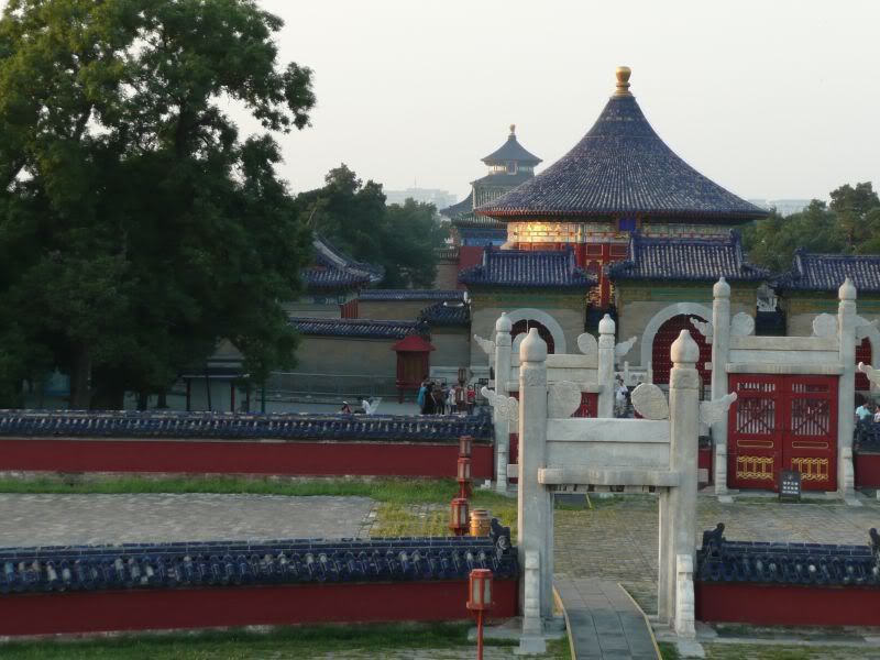 Der Himmelstempel war in Ordnung. Das war der Ort, an dem der Kaiser frueher einmal im Jahr dem Himmel geopfert hat, um fuer eine gute Ernte zu bitten. Eine riesige Parkanlage mit einigen Tempeln und Gebaeuden. Interessant waren die aelteren Menschen, die sich die Zeit im Park mit Kartenspielen oder Musikinstrumenten vertreibten. Einer der aelteren Maennder setzte sich direkt von seinem Rollstuhl auf die Bruestung und begann damit seine Mundorgel (im Ernst, das Geraet besass kleine Orgelpfeifen) zu spielen. Beim Weitergehen aber zweifelte ich an seiner Rollstuhlgebundenheit, weil er aufstand und sich an der Saeule zu dehnen begann.