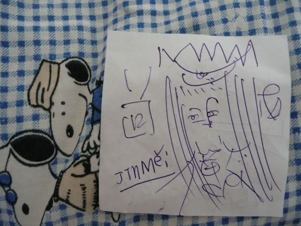 Man beachte meine hübsche Snoopy Bettdecke ;) und dieses komische Gesicht mit den vielen Strichen links und rechts der Augen. Das hatte sie mehrmals gezeichnet...*kopfschüttel*